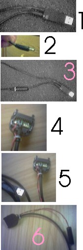 5. Solder a wire to pin 7 for + and one on 4 for -. Drill a little hole in the connector housing to run the wires out of and tie-strap them to the original cable.