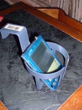 I've had my unit for a week and really enjoy it. However, I was frustrated by not being able to use it (safely ;) while I was driving. The car accessory is not yet available for the Visor (and will likely cost more than $40). On a whim I went to my local Trak Auto and looked at their drink holders. They have a plastic unit that hangs off the window ledge for 69 cents (73 cents after tax). I said nah....what the heck. Guess what- It Works Great! The holder is a good size for the unit. It's open enough the all of the screen is visible. The unit lies at a comfortable angle, and the whole thing is quite stable in my Toyota Sienna Minivan. Give it a try.