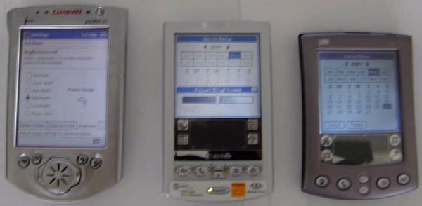 Here's another picture: iPAQ and Clie at 100% and m505 with sidelight on.